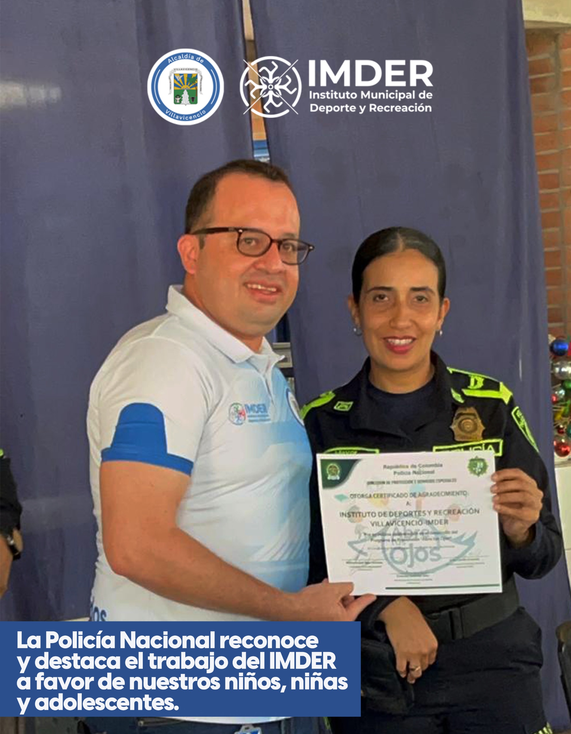 Este reconocimiento reafirma que el deporte también construye convivencia.Gracias a la Policía Nacional por destacar el trabajo del IMDER en favor de nuestros niños y jóvenes.